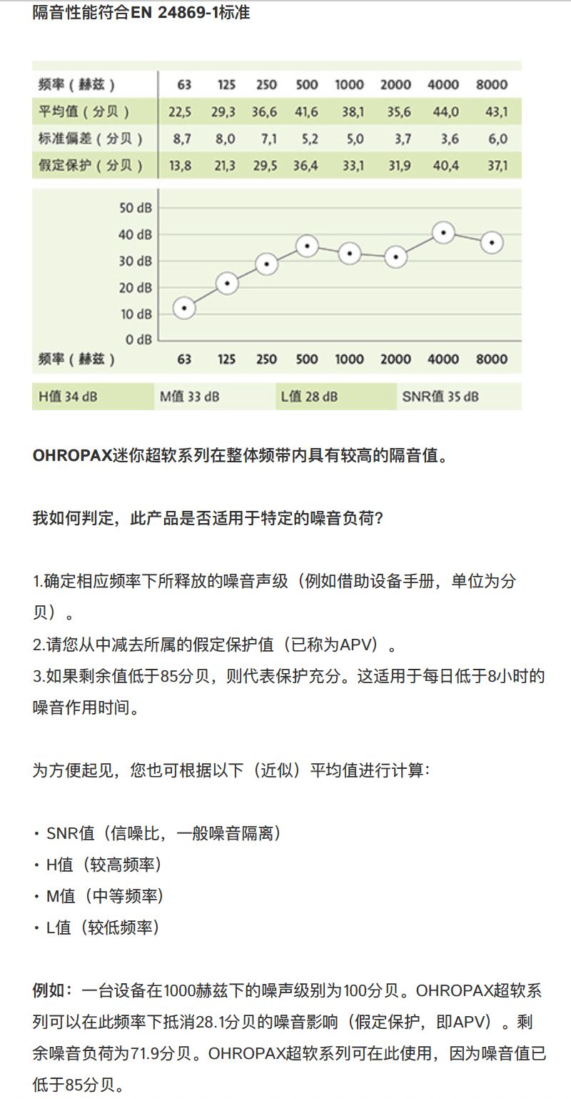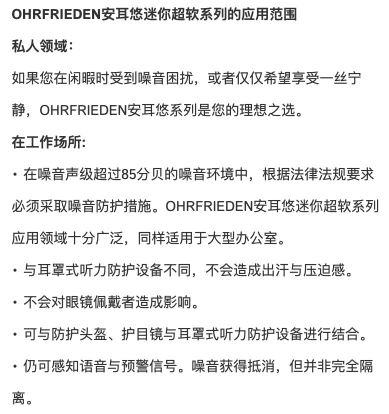 缓解耳痛这个于我而言显然是核心需求,然而降噪才是人家的重点所在。看看产品信息页关于噪声和使用建议,很严谨有没有,不得不说,德国企业在这一点上很是令人佩服。