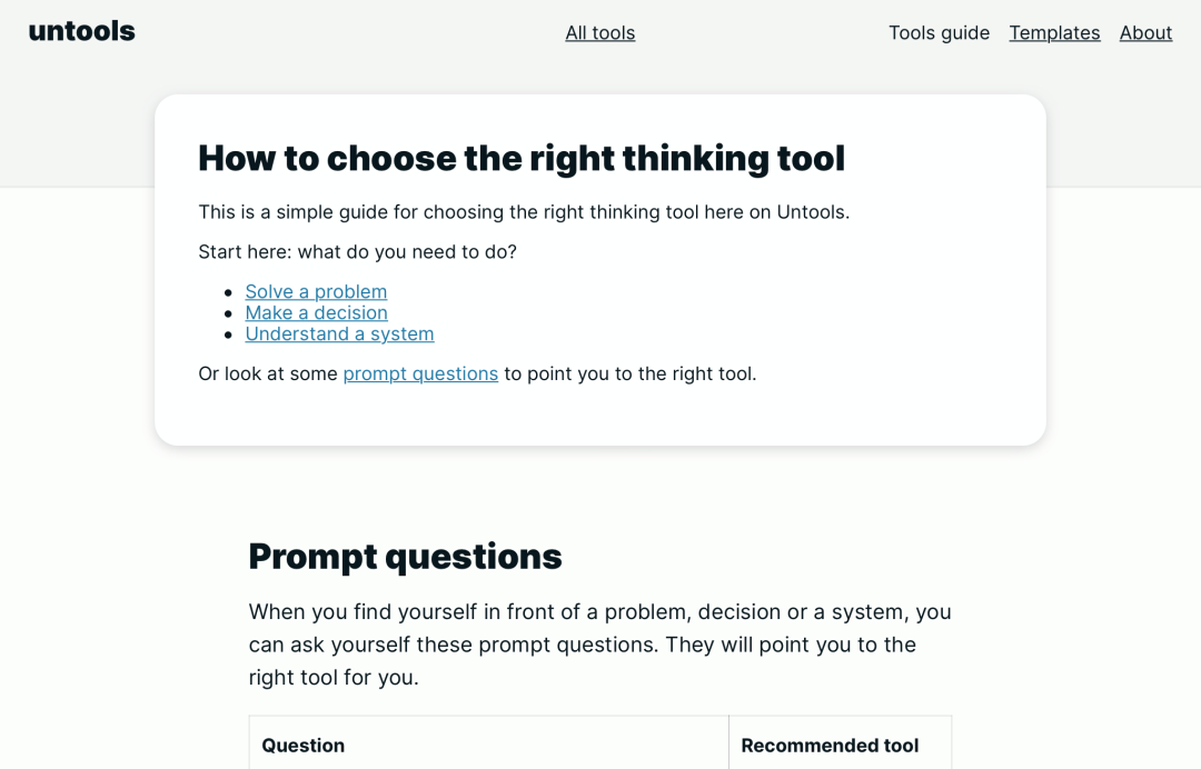 网站上的 Guide 里介绍了如何正确使用这些工具,如果你毫无头绪,页面上还提供了「Prompt questions」,帮助你选取合适的工具。