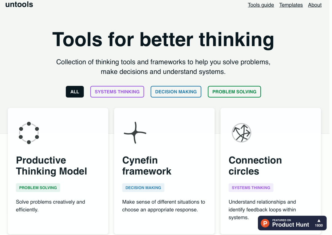 相反,如果你不曾思考过自己做出的这个选择是如何产生的,以及对自己的影响力如何,那么当你开始看 Untools 上的这些工具时,反而会给自己带来更多的压力,因为它们迫使你要开始思考,而且是深层次的思考,深层次的思考一般都很烧脑,于是,在还没开始之前,你就可能放弃了。