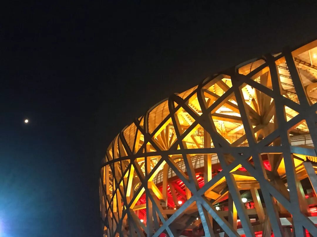 题图是昨晚拍的鸟巢,魔都第100场的时候也有一轮圆月呢