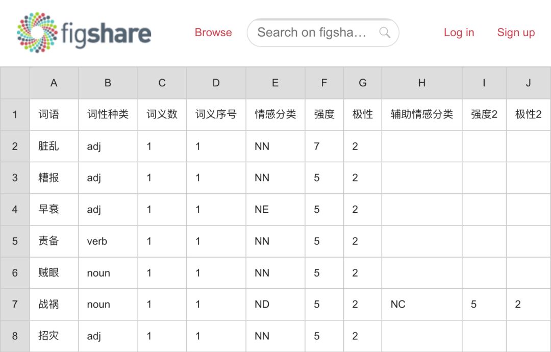极性:每个词在每一类情感下都对应了一个极性。其中,0代表中性,1代表褒义,2代表贬义,3代表兼有褒贬两性。
