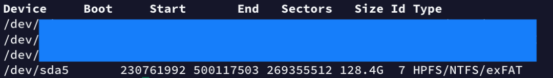 sudo fdisk -l(注:此处以 /dev/sda5 为例)