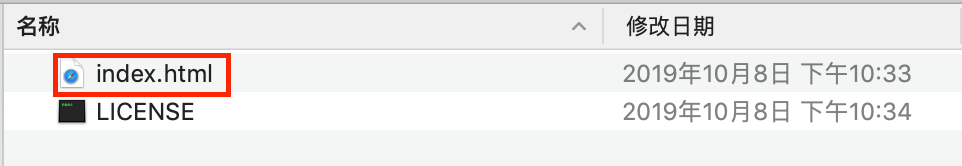 解压出来有两个文件,License 是授权文件不用管,用浏览器打开 index.html
