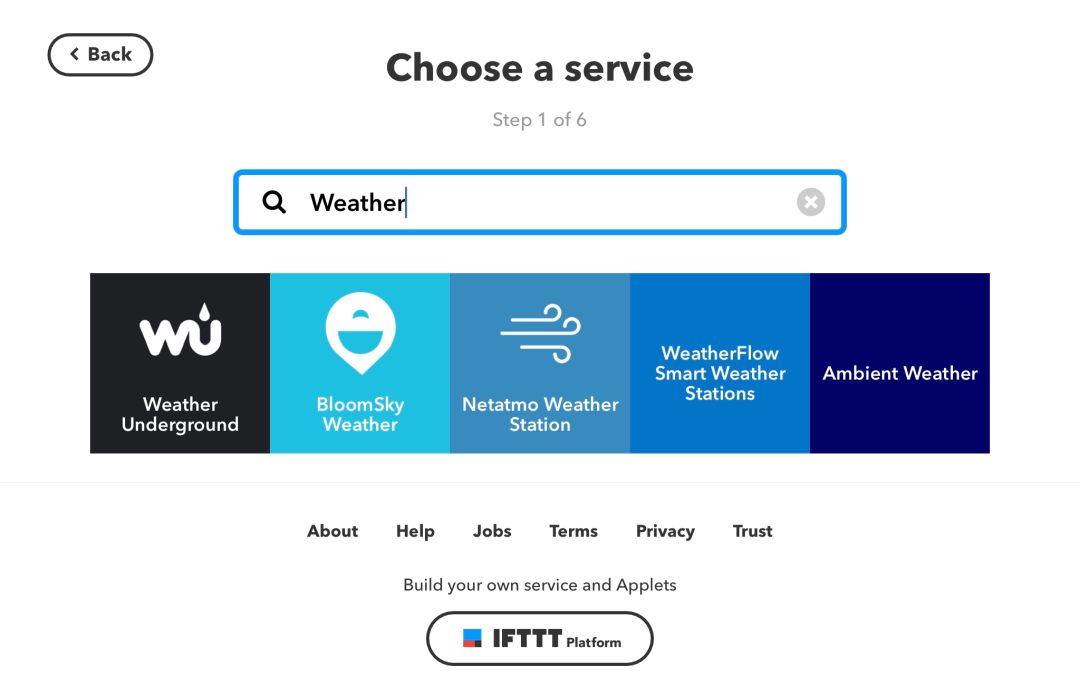 关于 ifttt,有两个名词需要先了解下,一个是 Applet,一个是 Service,Applet 就是前面我们提到的一个完整的「如果……则……」巨型,而其中的「下雨」和「提醒」就属于 Service,所以 Applet 是通过一些逻辑把各种服务组合起来以满足你的需求。