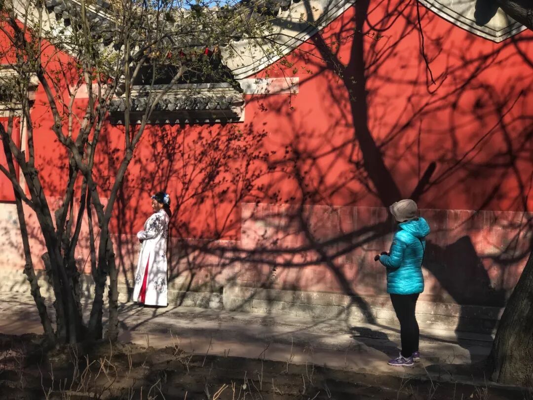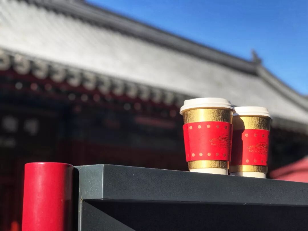 比如,在故宫里看到了很多行走的Cosplay,Cos古代美女或者各宫娘娘,以及网红的故宫咖啡(排队望眼欲穿,借用俩妹纸的杯子拍了张