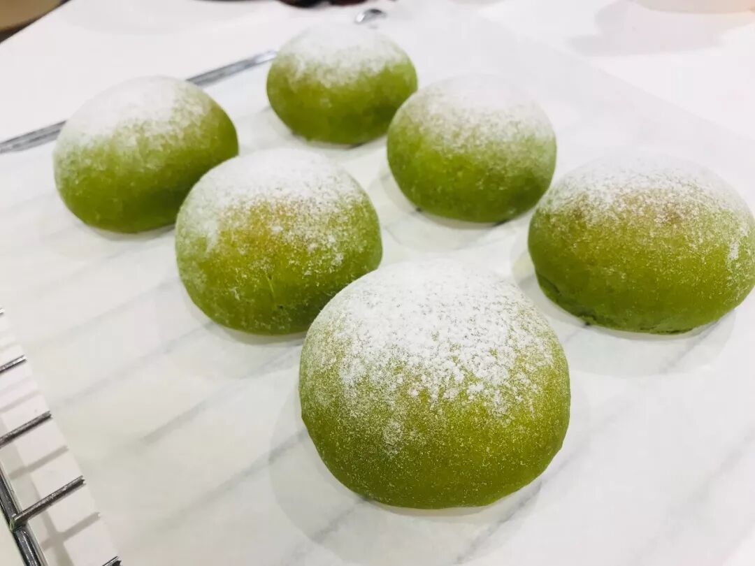 抹茶粉、糯米粉,揉面,抹茶麻薯新鲜出炉