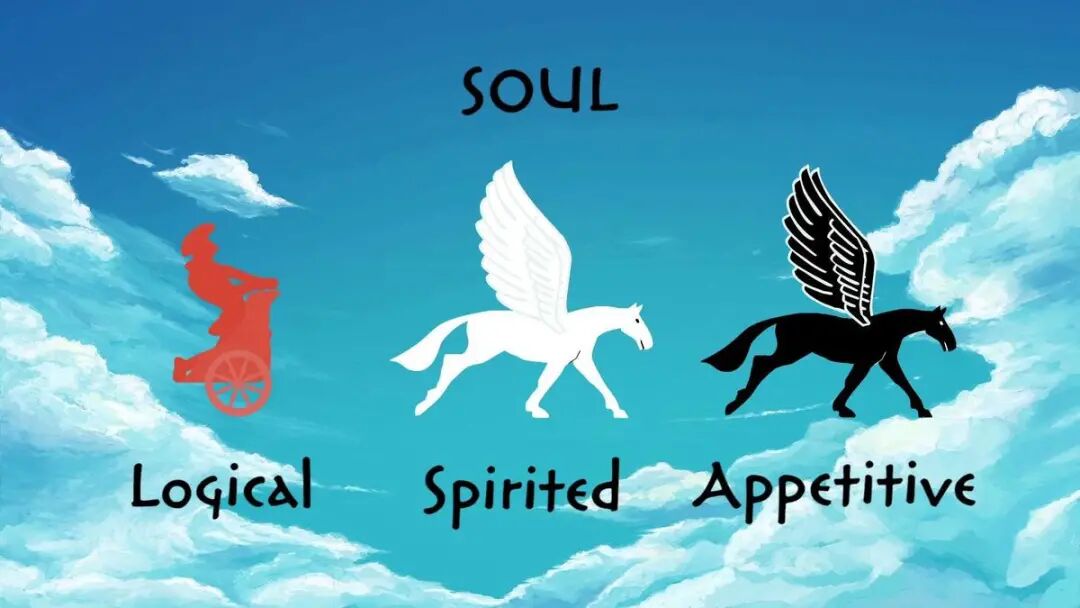 公元前三百多年的古希腊哲学家,柏拉图,在他的书《斐德罗》中有一则「战车寓言」,说人的灵魂不只有一个,而是三个:黑马、白马与骑手。黑马代表欲望、白马代表意志,而骑手代表理性。